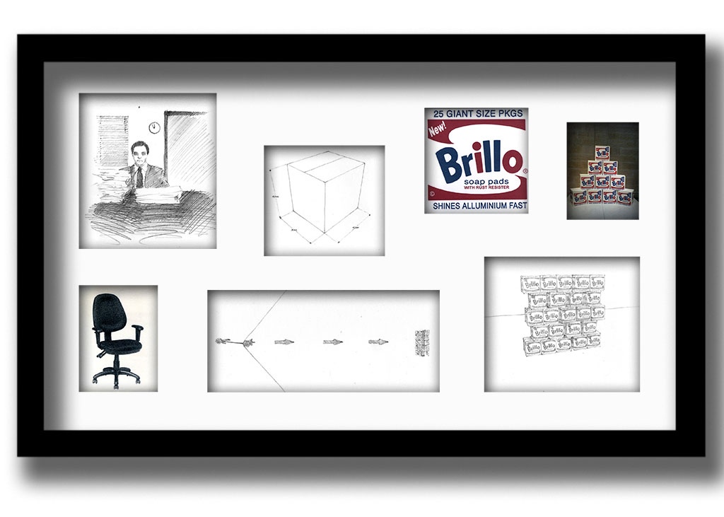 job office v.s. Brillo, project to understand something about the difference between a real job and make art, 2010, drawings, and pictures framed, 40x25cm
